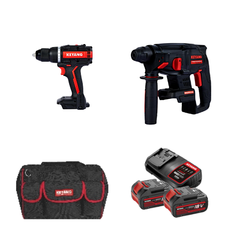 Двойной строительный набор Keyang SET-9 — мощное решение для строительных и ремонтных проектов. Перфоратор + отбойный молоток HD18BL обеспечивает эффективную работу с высокой ударной силой на твердых поверхностях, в то время как машина для сверления и закручивания DD18BL-W обеспечивает профессиональную производительность для точных операций сверления и закручивания. С двумя аккумуляторами по 5,0 А·ч и быстрым зарядным устройством достигается длительная и непрерывная работа. Тканевый кейс обеспечивает легкую переноску и удобное использование, делая этот набор незаменимым для профессиональных мастеров и тяжелых работ.